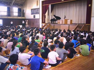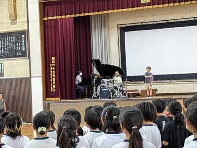 林小学校の音楽の先生のピアノとセッションし、間近で心に響く演奏をしてくださいました。
