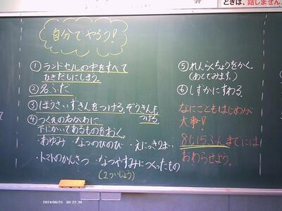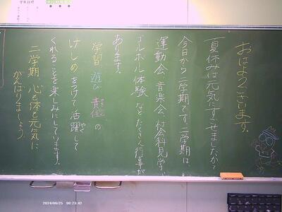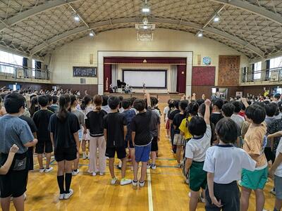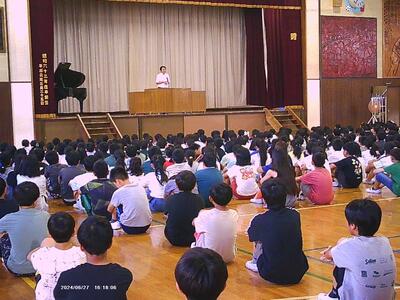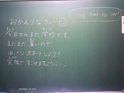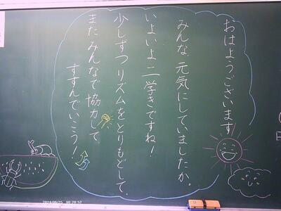 始業式の後には、9月10月の生活目標「時間を守って行動しよう」のお話が、佐藤ありました。