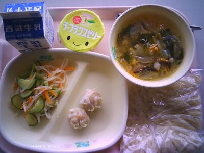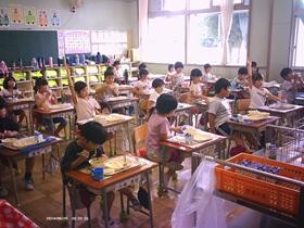 給食当番さんを中心にテキパキと静かに配膳し、モグモグとおいしそうに食べていました。
