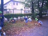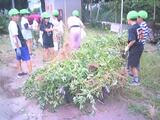 夏休みの間に校庭にたくさん生えた雑草をぬいて、みんなできれいにしました。