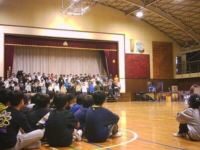 また、校内音楽会で歌う「はじめよう 音楽会を」の全員合唱を行いました。