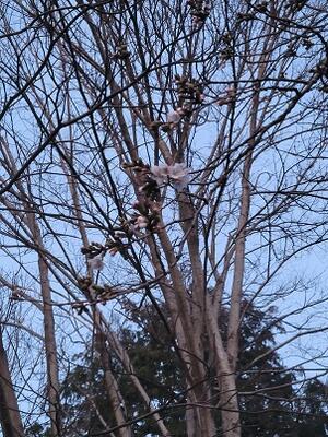 校庭の桜をよく見てみると少し咲いていました。ようやく?春の訪れです。